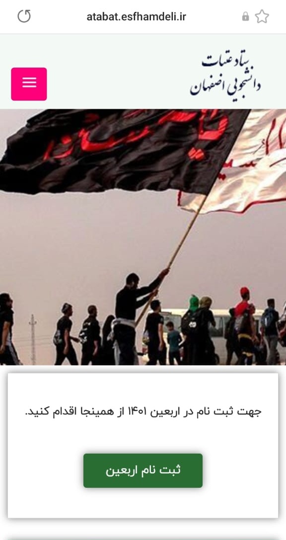 برای ثبت نام به سامانه ستاد عتبات دانشجوی اصفهان به نشانی زیر مراجعه نمایید.