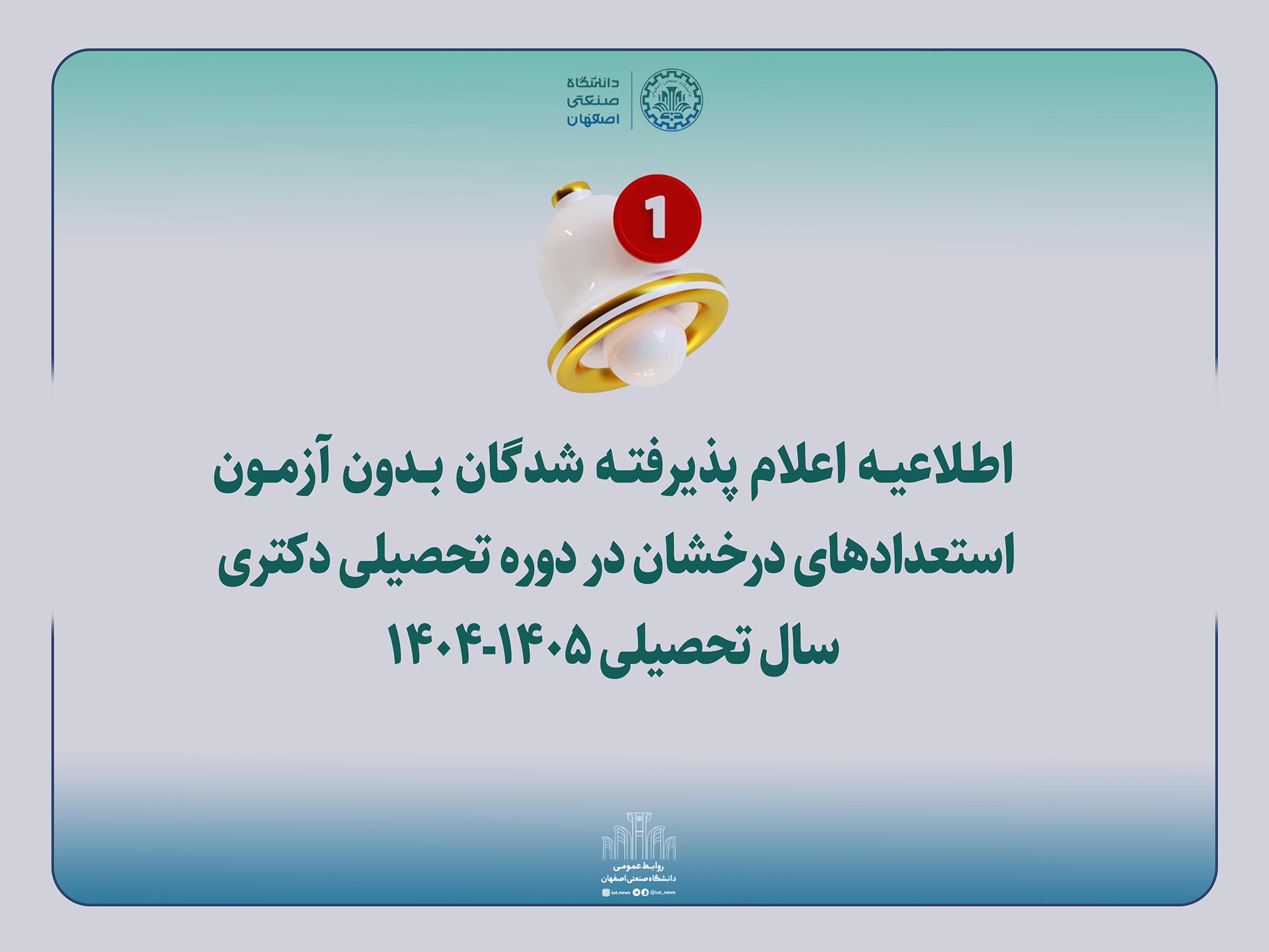اسامي پذیرفته شدگان بدون آزمون مقطع دكتري سال تحصیلی۱۴۰۵-۱۴۰۴ دانشگاه صنعتی اصفهان
