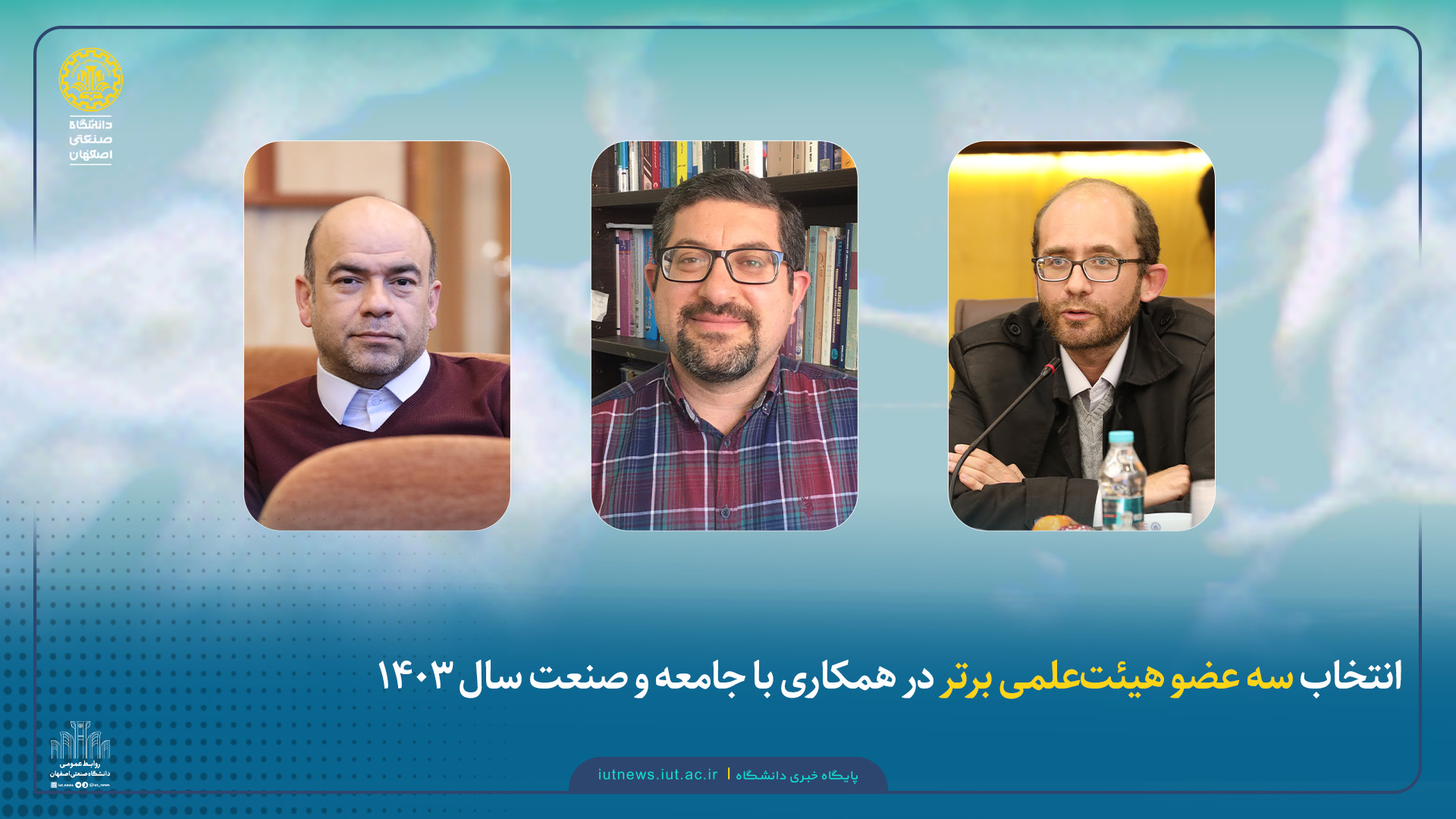 سه عضو هیئتعلمی دانشگاه صنعتی اصفهان بهعنوان برترینهای همکاری با جامعه و صنعت در سال ۱۴۰۳ از سوی وزارت علوم، تحقیقات و فناوری معرفی شدند. دکتر سید مهدی حجازی و دکتر محسن شنبه از دانشکده مهندسی نساجی و دکتر سید هادی حسینی از دانشکده مهندسی معدن در فهرست برترین اساتید فعال در حوزه صنعت قرار گرفتند.
