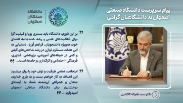 صدور پیام سرپرست دانشگاه صنعتی اصفهان خطاب به دانشگاهیان گرامی